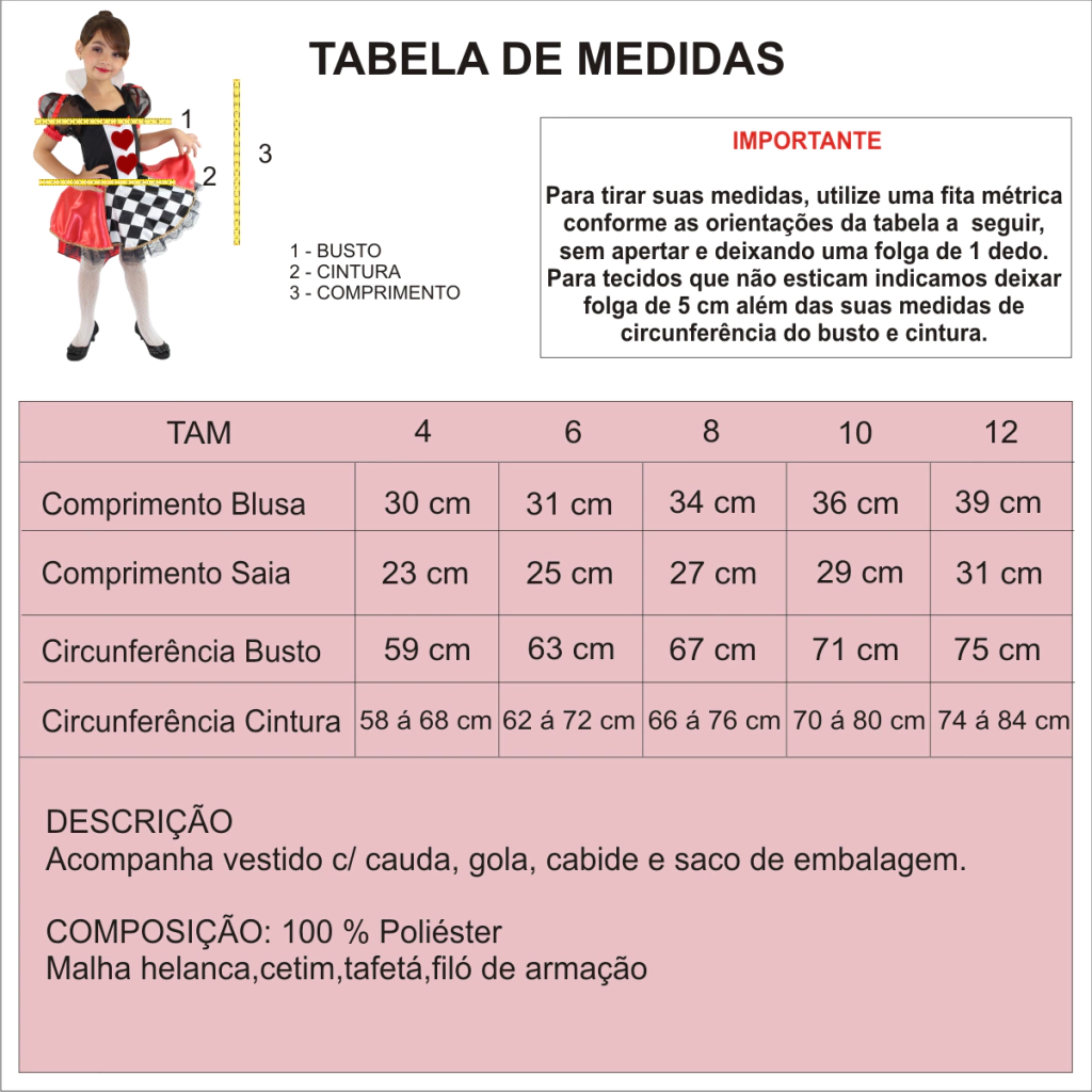 Com a Fantasia Dama de Copas Halloween Infantil, sua pequena vai encantar e reinar com muita atitude em qualquer ocasião!